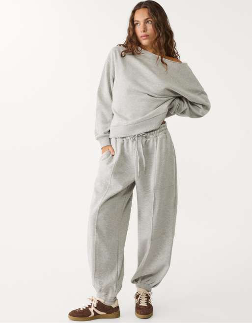 Stradivarius - Gråmelerede plyssede joggingbukser med ballonben