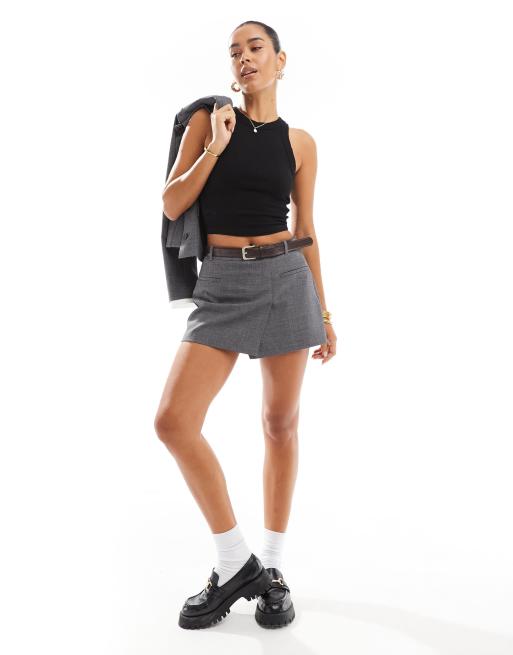 Stradivarius - Gråt mini-skort med bælte - Del af sæt