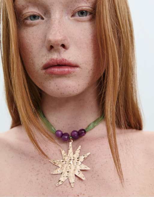 Stradivarius - Grøn halskæde i stof med solvedhæng