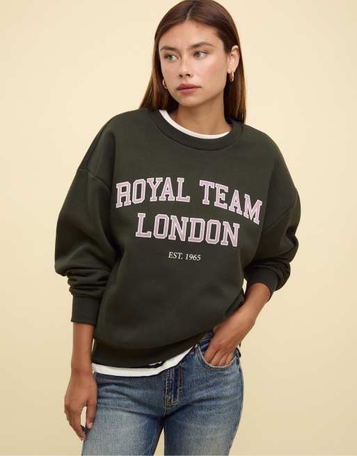 Stradivarius - Grøn sweatshirt med broderi