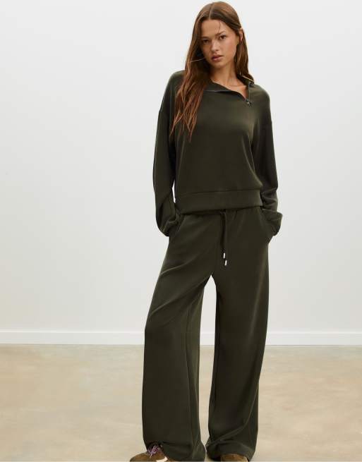 Stradivarius - Grøn sweatshirt med lynlås i siden blød finish