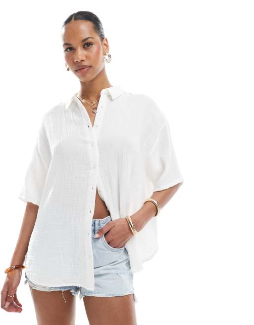 Stradivarius - Hvid cropped skjorte i bomuld