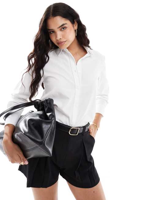 Stradivarius - Hvid skjorte med perlekant