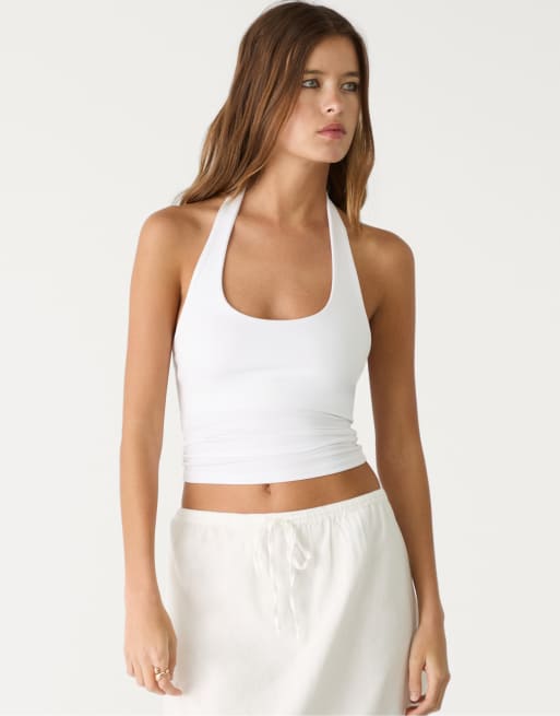 Stradivarius - Hvid top med racerhals