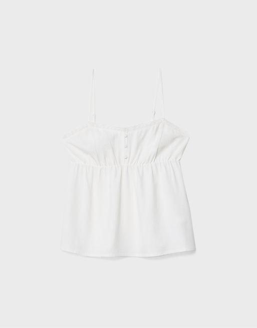 Stradivarius - Hvid top med stropper i hørblanding