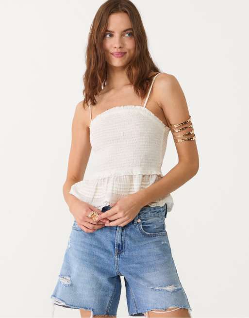 Stradivarius - Hvid top med tynde stropper og flæser