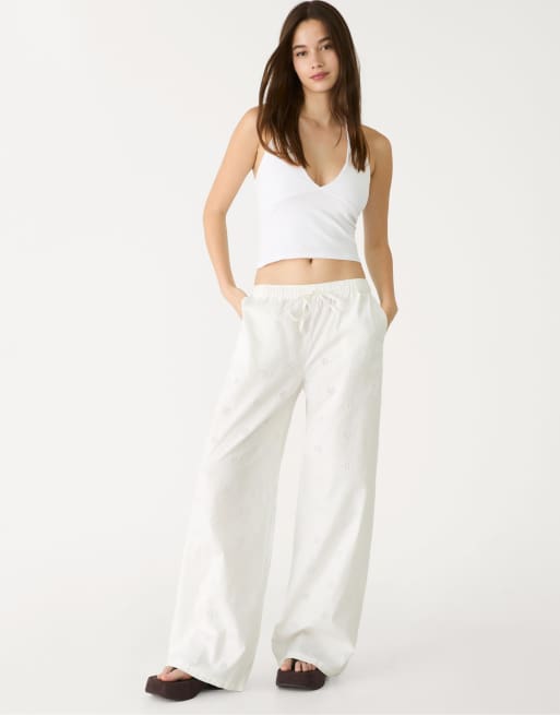 Stradivarius - Hvide flagrende bukser i broderie anglaise