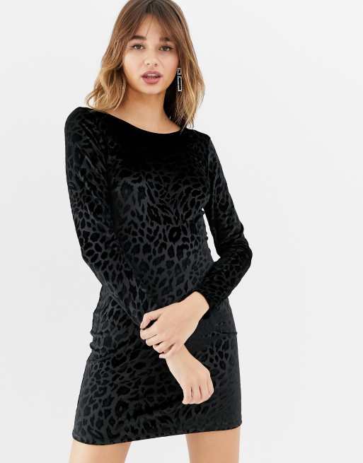 Stradivarius - Langærmet kjole i velour med leopardprint