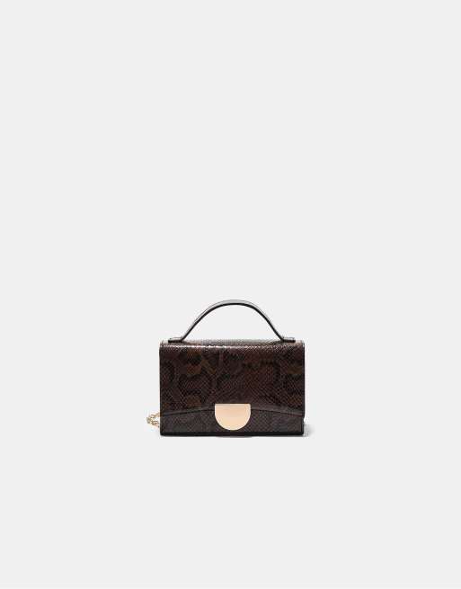 Stradivarius - Lille brun crossbody-taske med dyreprint og metaldetaljer