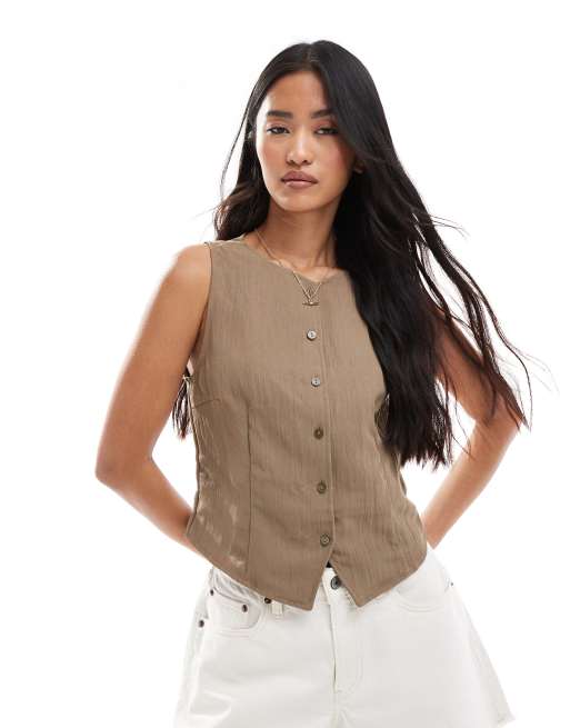 Stradivarius - Lys kamelbrun top med tekstur og knapper