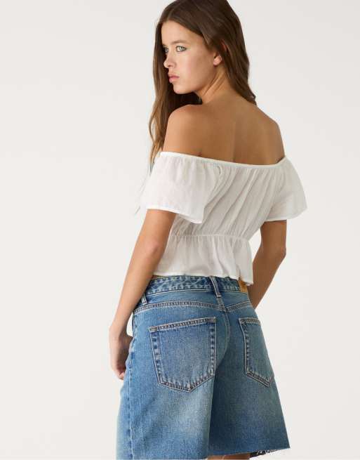 Stradivarius - Lyseblå bermudashorts med mellemhøj talje i denim