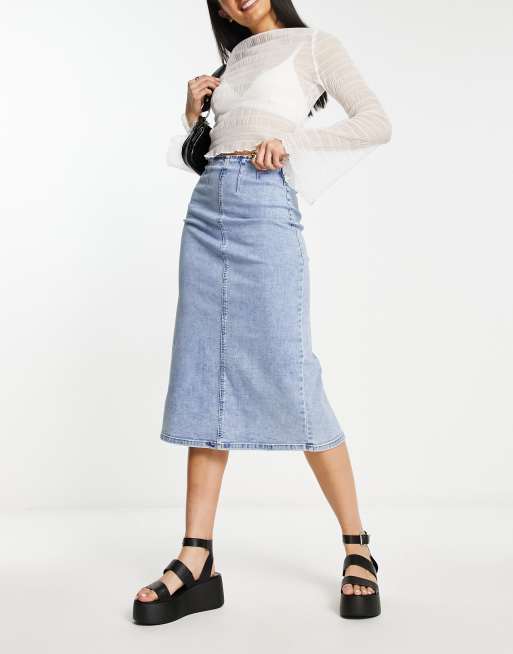 Stradivarius - Lyseblå tube-nederdel i denim