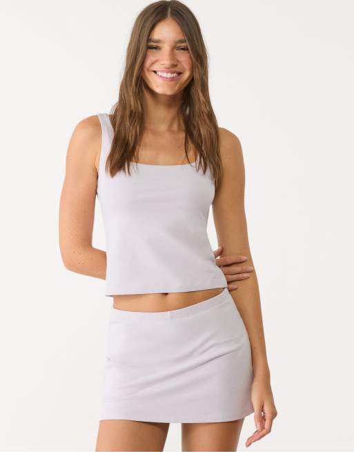 Stradivarius - Lyslilla basistop med firkantet halsudskæring