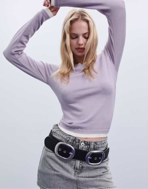 Stradivarius - Lyslilla strikket trøje med kontrasterende kanter