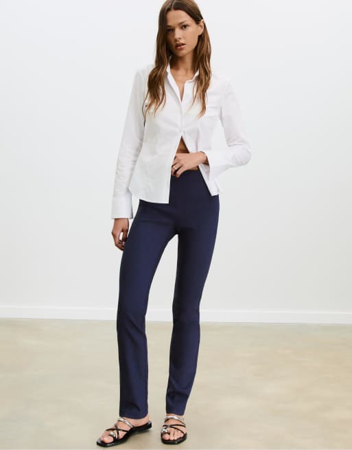 Stradivarius - Marineblå Slim Fit-bukser med denim-effekt