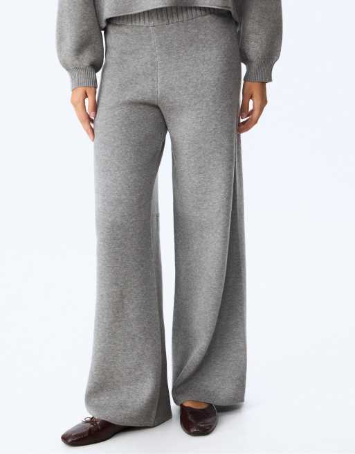 Stradivarius - Mørkegrå bukser i strik med vide ben
