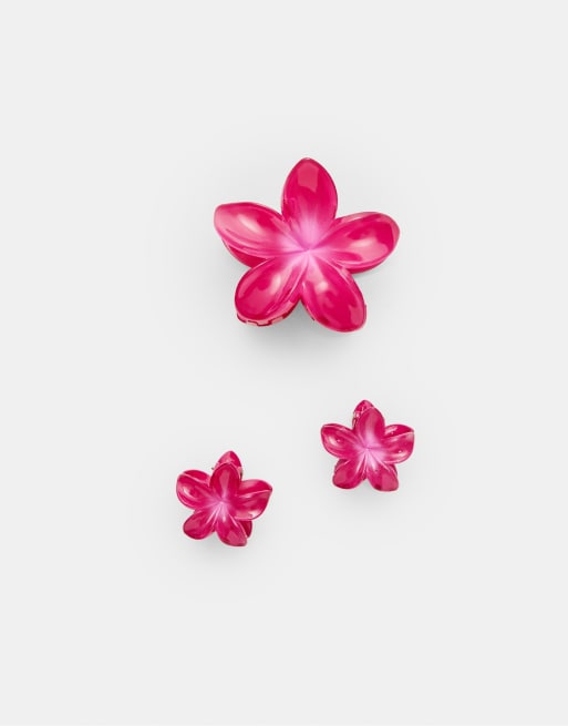 Stradivarius - Pakke med 3 fuchsiafarvede hårklemmer med blomsterdesign
