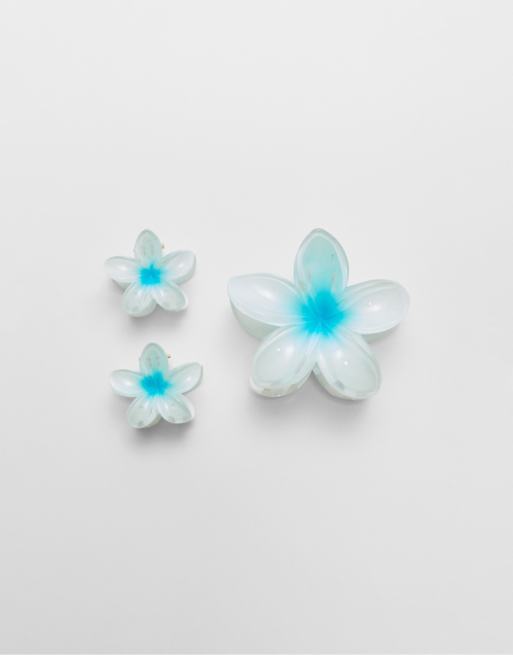 Stradivarius - Pakke med 3 marineblå hårklemmer med blomsterdesign