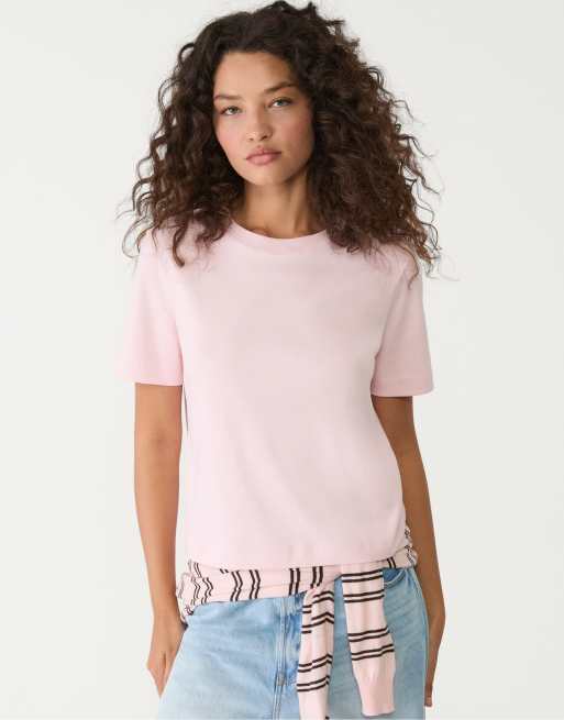 Stradivarius - Pastellyserød regular fit-T-shirt i kraftigt stof