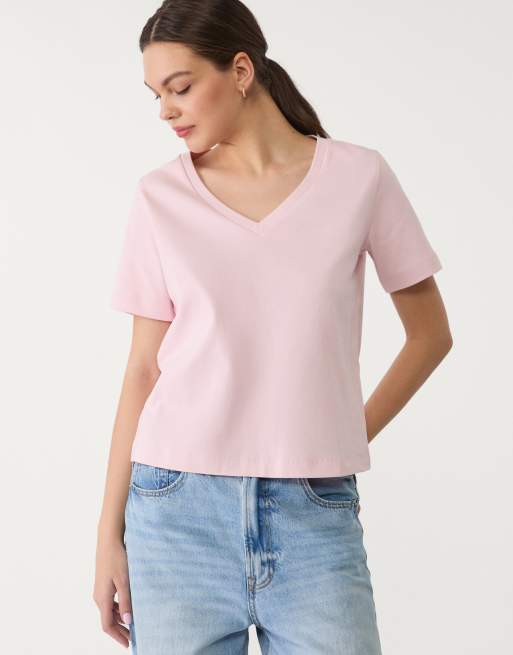 Stradivarius - Pastellyserød T-shirt i kraftigt stof