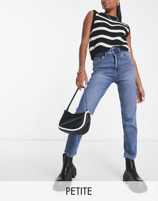 Stradivarius Petite - Blå mom jeans i slim fit med stretch og flænger