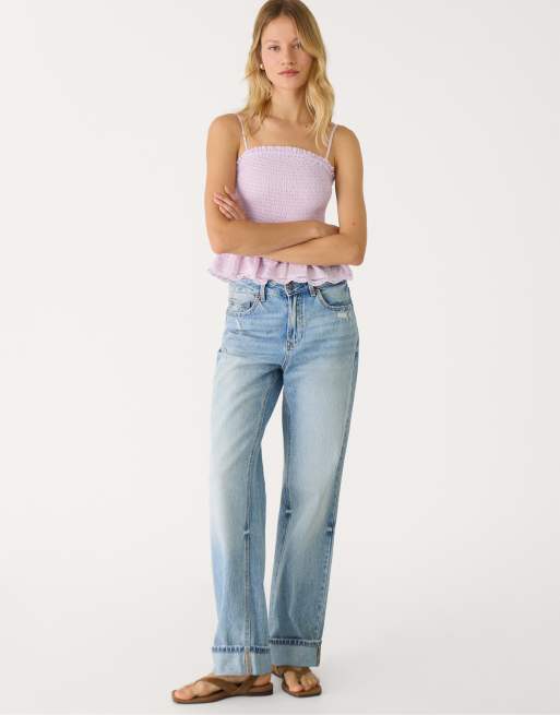 Stradivarius Petite - D92 - Blå denimjeans med lige vide ben