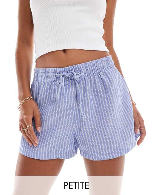 Stradivarius Petite - STR - Rustikke pull on-shorts med blå striber