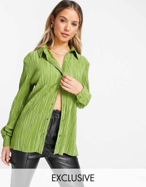 Stradivarius - Plisseret skjorte i olivengrøn - Del af sæt