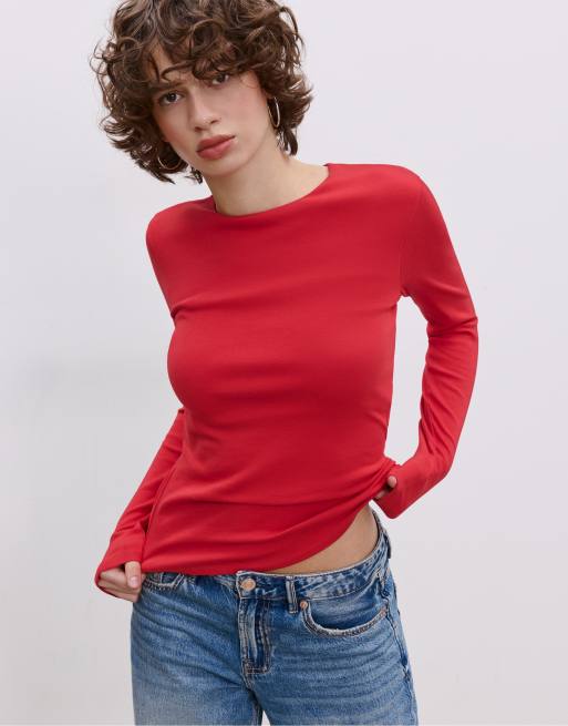 Stradivarius - Rød basis-T-shirt med lange ærmer