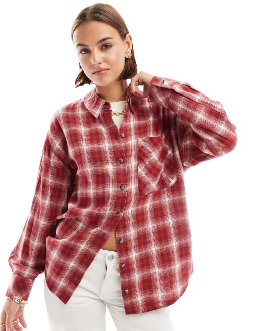Stradivarius - Rød og oversized skjorte med tern