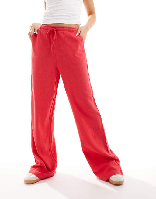 Stradivarius - Røde pull-on-bukser i hør