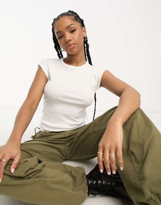 Stradivarius - Ribstrikket baby-T-shirt i hvid