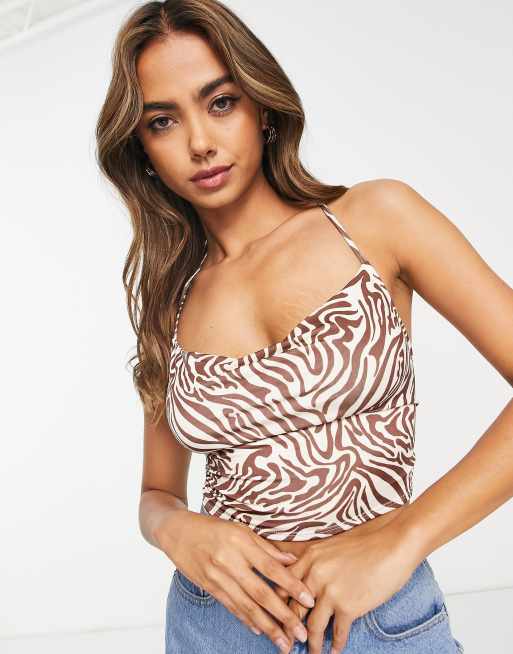 Stradivarius - Rustfarvet tørklædetop med zebraprint