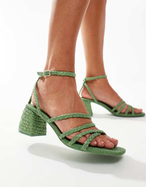 Stradivarius - Salviegrønne højhælede sandaler med rebdetalje