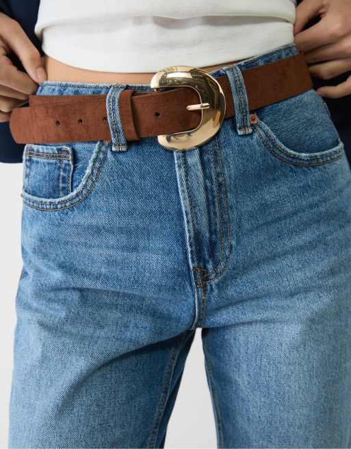 Stradivarius - Sart kamelbrunt bælte med halvmåneformet spænde