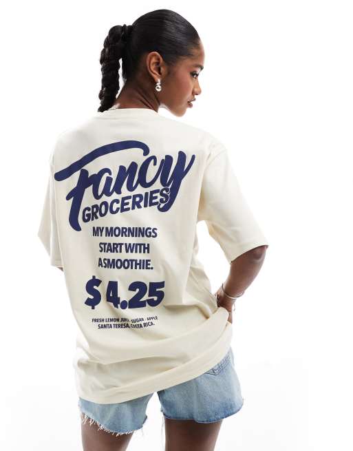 Stradivarius - Sart lyserød oversized T-shirt med 'Groceries'-print