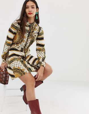 Stradivarius - Skjortekjole med tørklædeprint