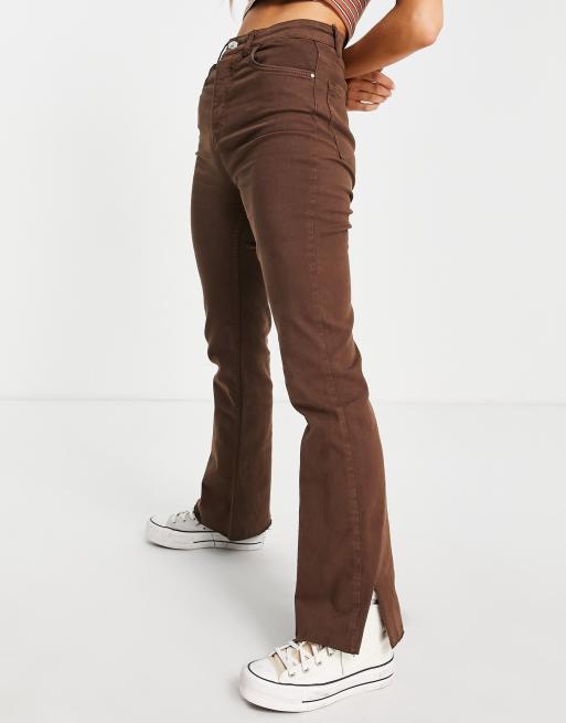 Stradivarius - Smalle jeans med svaj og slidser i brun