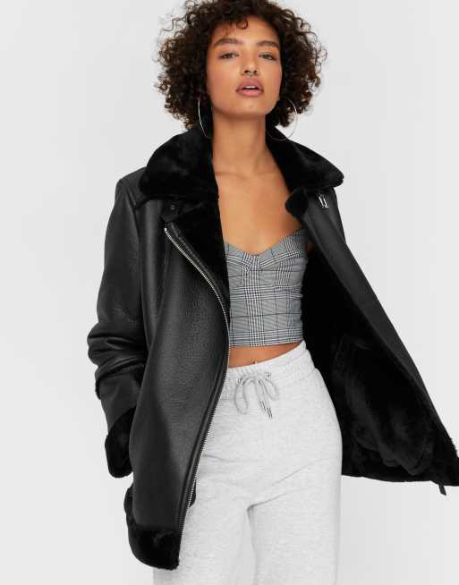 Stradivarius - Sort aviator-jakke i imiteret læder