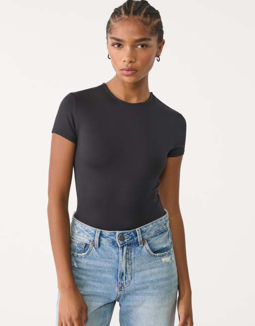 Stradivarius - Sort bodystocking med korte ærmer i polyamid
