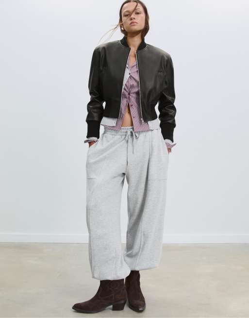 Stradivarius - Sort bomber-jakke med skulderpuder og lædereffekt