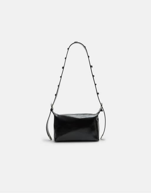 Stradivarius - Sort crossbody-taske med nitter i læderlook