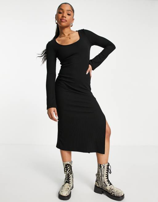Stradivarius - Sort midikjole med rund hals