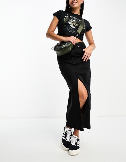 Stradivarius - Sort midinederdel i denim med slids foran