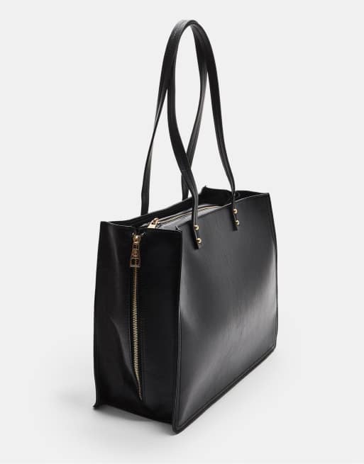 Stradivarius - Sort shoppertaske med lynlås i siden