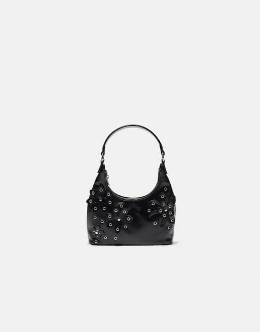 Stradivarius - Sort skuldertaske med øjer og blomsterdetaljer