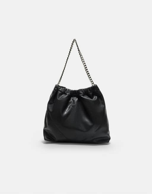 Stradivarius - Sort skuldertaske med kæde