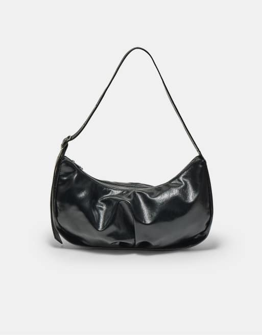 Stradivarius - Sort skuldertaske med plisseringer og blank finish
