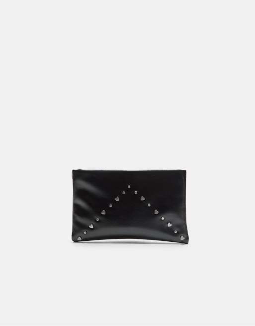 Stradivarius - Sort toilettaske med effekt og nitter samt hjerteformede nitter