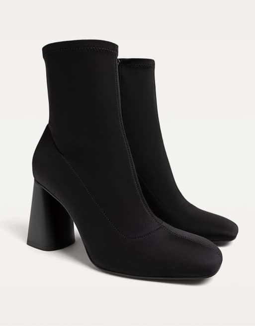 Stradivarius - Sorte ankelstøvler med høj hæl og neoprenlignende effekt